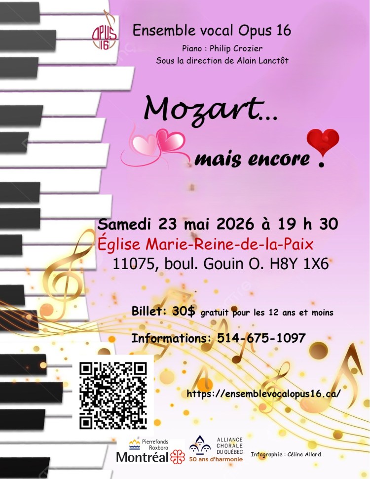 Bienvenue sur notre site. Bonne visite. Concert conjoint avec le Choeur MassenetConcert conjoint avec le Choeur Ambiance de LachineOpus 16 en décembre 2022Concert de Noël 2022Opus 16 en novembre 2023Printemps 2025Printemps 2025 Notre prochain concert. Billets disponibles en cliquant sur le code QR Nos partenaires